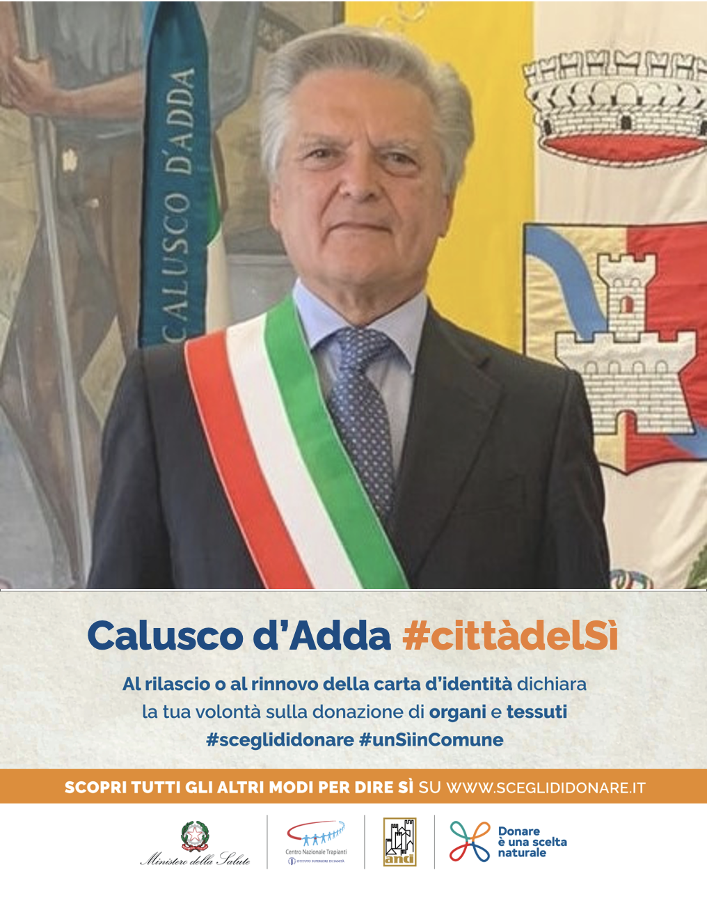 Il Comune di Calusco d'Adda partecipa alla campagna informativa e divulgativa promossa dall'Associazione Nazionale Comuni Italiani con il Ministero della Salute e il Centro Nazionale Trapianti, in occasione della 26ma Giornata nazionale per la donazione di organi e tessuti del prossimo 16 aprile.