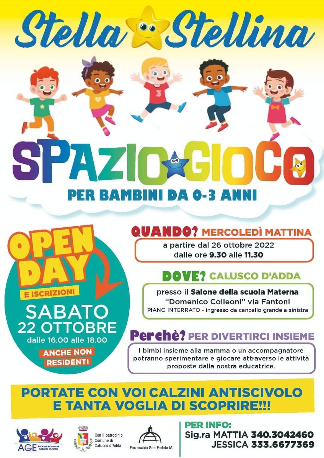 Riparte Stella Stellina, lo spazio gioco dedicato ai bimbi da 0 a 3 anni e alle loro mamme, presso la Scuola Materna di Via Fantoni. Tutte le informazioni nell'allegata locandina.
